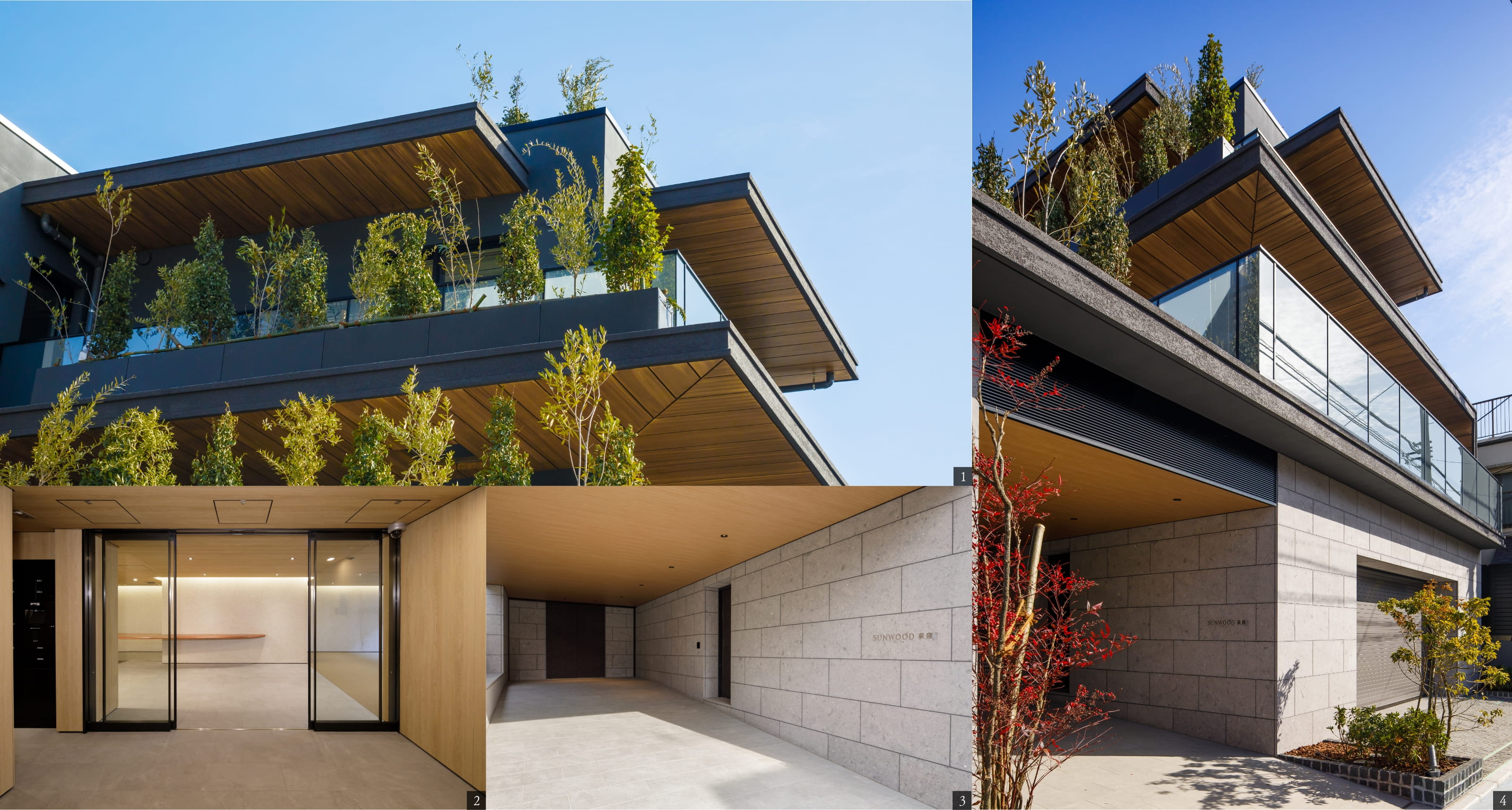 1.4.外観竣工写真 2.エントランスホール竣工写真 3.エントランス竣工写真